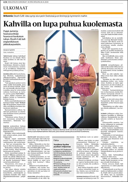 The illustration portrait above is of Sam-Solicitor, Sarah-Funeral Director & Ruth-Priest who recently held a Death Café meeting in Fleet, Hampshire and who are planning to hold a new meeting next Spring.