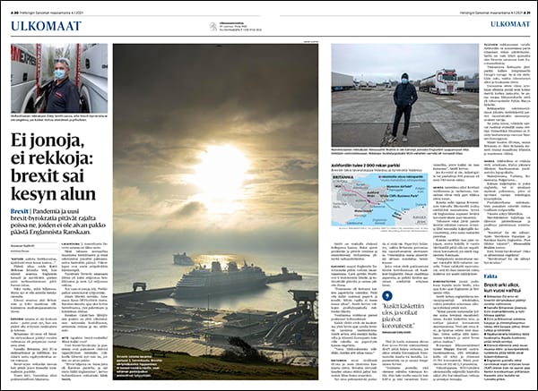 On an assignment (on the 2nd) for Helsingin Sanomat we watched from a clifftop above the port as just 3 cars, 1 van & 8 lorries disembarked and 7 cars & 8 lorries embarked on an early morning DFDS ferry bound for Calais. The Brexit chaos that some had predicted would happen at Dover in the first few days after the UK left the EU at 11pm on the 31st December did not transpire. It may yet.